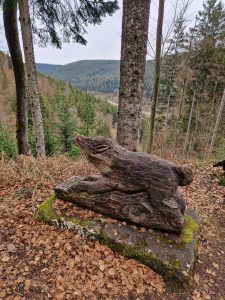 Wegbeschreibung :….. Im Kleinen Enztal über Jungscharhütte zur Seligfloßstube – auf dem Schulerweg (oder Graf-Eberhardt-Weg) hoch auf den Meistern zur Riesenstein-Hütte – den Zick-Zack-Weg hinunter zum Fernheizwerk Bad Wildbad – zurück nach Calmbach auf dem Ölweg, ein kleines Stück Mittelweg und auf dem Badweg zurück zum Parkplatz.