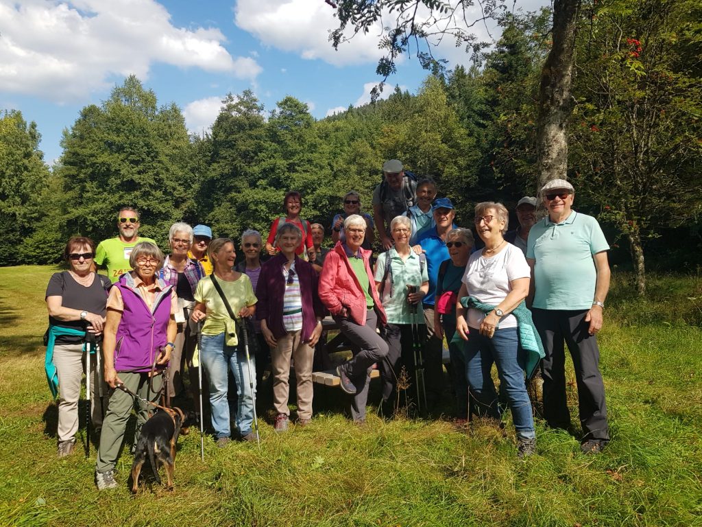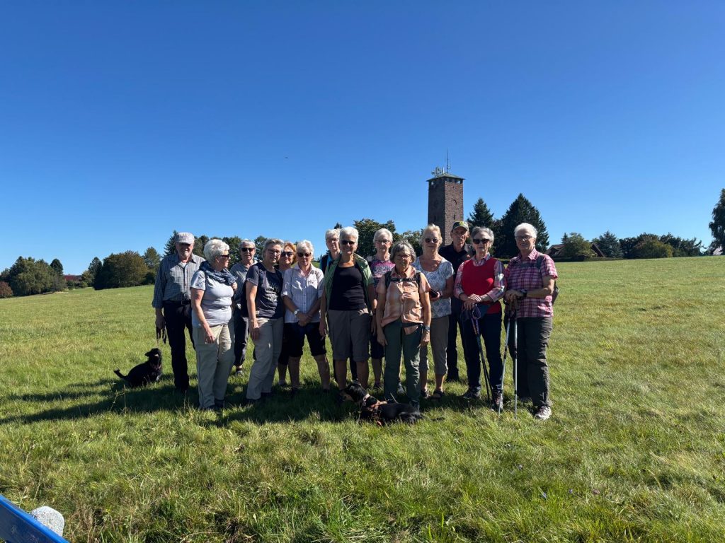 Bei strahlendem Spätsommerwetter war der Schwarzwaldverein Calmbach am Donnerstag den 18.September 2025 mit 15 Wanderfreunden auf dem Dobel unterwegs. Wanderführerin Renate